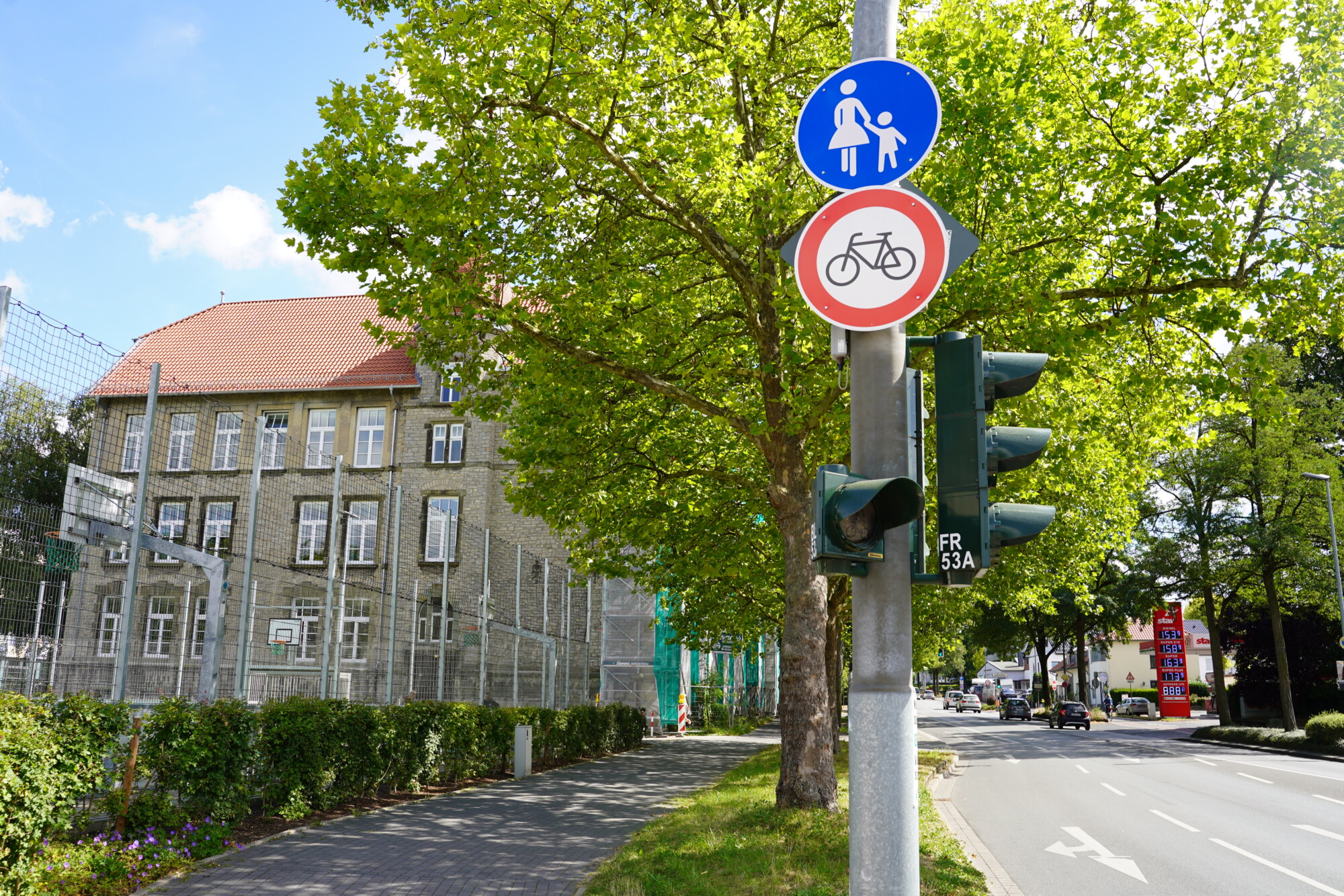 Neue Regelung auf der Hornschen Straße: Radfahrende dürfen den Gehweg künftig nur noch in Fahrtrichtung nutzen – in Gegenrichtung bleibt er ausschließlich dem Fußverkehr vorbehalten. Foto: Stadt Detmold