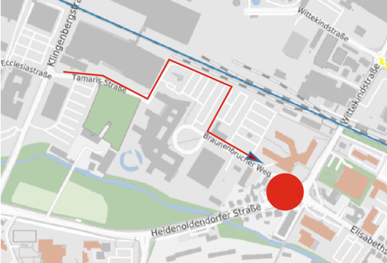 Ab Montag, 29. September, wird die Sperrung der Heidenoldendorfer Straße bis in den Kreuzungsbereich der Agentur für Arbeit ausgeweitet. Damit ist die Straße von der Aral-Tankstelle bis zur Einmündung Braunenbrucher Weg/Elisabethstraße voll gesperrt. Die Agentur für Arbeit sowie weitere Gebäude am Braunenbrucher Weg bleiben erreichbar – die Zufahrt erfolgt über die Tamarisstraße und das anschließende Parkplatzgelände am ehemaligen Telekomgebäude. Die Verbindung Elisabethstraße/Wittekindstraße bleibt einspurig bestehen und wird über eine Baustellenampel geregelt.
