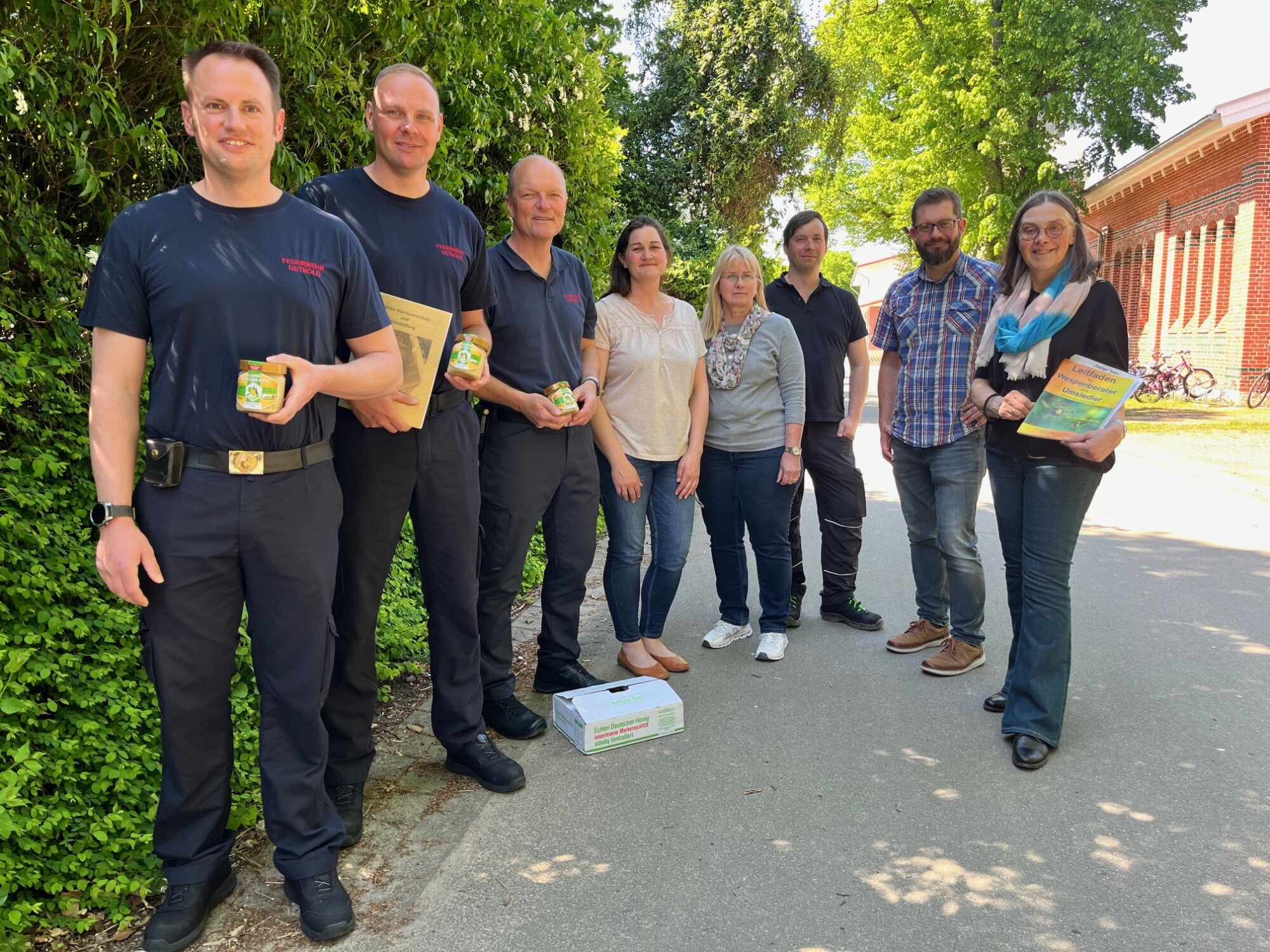 Um für diesen außergewöhnlichen Einsatz auch offiziell danke zu sagen, hatte die Untere Naturschutzbehörde des Kreises Lippe alle Beteiligten jetzt noch einmal an den Ort des Geschehens eingeladen. Das süße Geschenk für seine Kolleginnen und Kollegen nahm Feuerwehr-Chef Joachim Wolf persönlich entgegen: einen ganzen Karton Detmolder Bienenhonig.