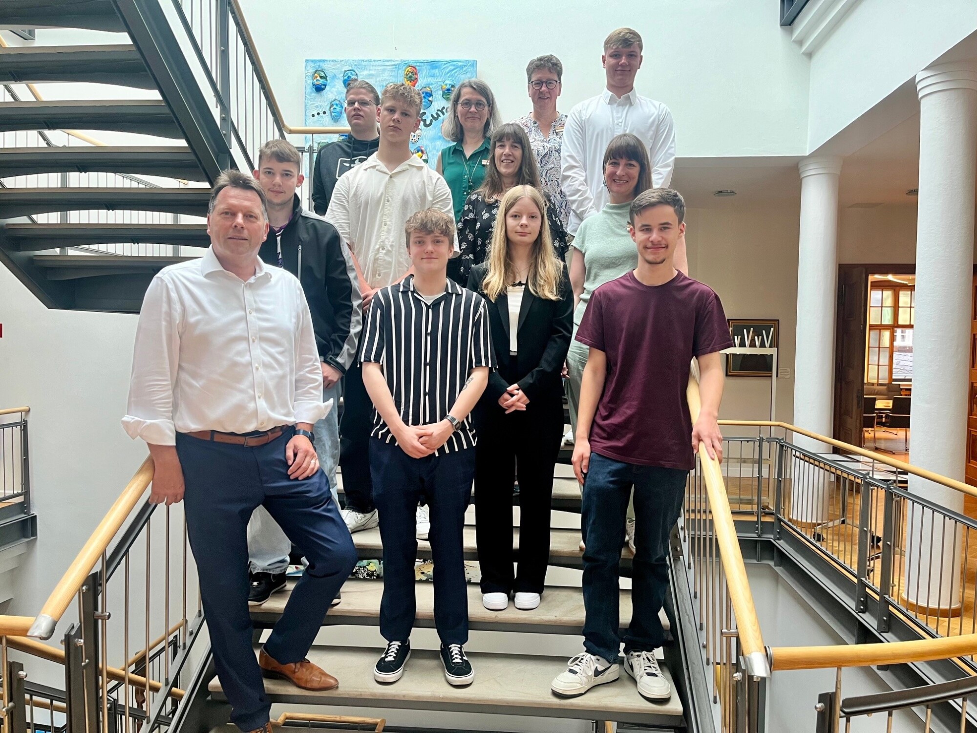 Sie erlernen ganz unterschiedliche Berufe, und doch haben sie alle den gleichen Arbeitgeber: Der Verein „Chance Ausbildung Lippe e.V.“ (CAL) ist mit elf jungen Menschen in das neue Ausbildungsjahr gestartet. Das begann im Rahmen der Einführungswoche im Detmolder Rathaus, wo Bürgermeister Frank Hilker, der zugleich stellvertretender Vorsitzender des CAL ist, die Auszubildenden zu einem gemeinsamen Frühstück eingeladen hatte, um ihnen persönlich alles Gute für ihren neuen Lebensabschnitt zu wünschen.