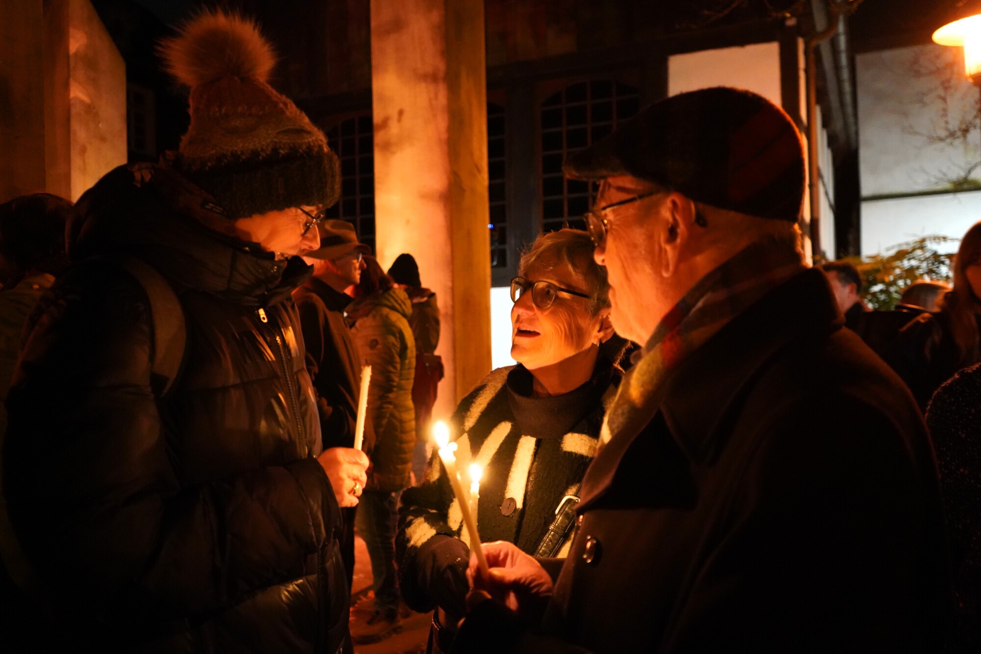 Zu der Veranstaltung, die seit 1988 jedes Jahr am 9. November an diesem Ort begangen wird, hatte die Stadt Detmold gemeinsam mit der Gesellschaft für Christlich-Jüdische Zusammenarbeit eingeladen. Als besonderen Gast begrüßten die Ausrichtenden Kathie Wiederkehr aus der Schweiz. Sie teilte ihre Gedanken zum 9. November mit den Anwesenden aus einer besonderen Position heraus: Ihr Großvater war der Journalist, Sozialdemokrat und Jude Felix Fechenbach, der als erstes Opfer der Nazis in Lippe am 7. August 1933 ermordet wurde. „In Anbetracht der weltpolitischen Lage lassen mich Worte wie „Nie wieder“ oder „von der Geschichte lernen“ daran zweifeln, ob wir überhaupt etwas gelernt haben“, so Kathie Wiederkehr. Doch kollektive Depression sei keine Option. Ihr Großvater Felix Fechenbach, so Kathie Wiederkehr, würde den Menschen heute wohl Mut machen, die Demokratie als kostbare politische Errungenschaft zu bewahren. Sie freute sich besonders darüber, dass auch viele junge Leute zur Gedenkveranstaltung gekommen waren. Denn der Umgang der jungen Menschen mit der Vergangenheit, so Wiederkehr, sei im Hinblick auf die Zukunft doch die zentrale Frage: „Sind Gedenktage noch zeitgemäß? Was hat das Vergangene mit der jungen Generation zu tun? Welche Form der Erinnerung spricht euch an?“, so Kathie Wiederkehr.