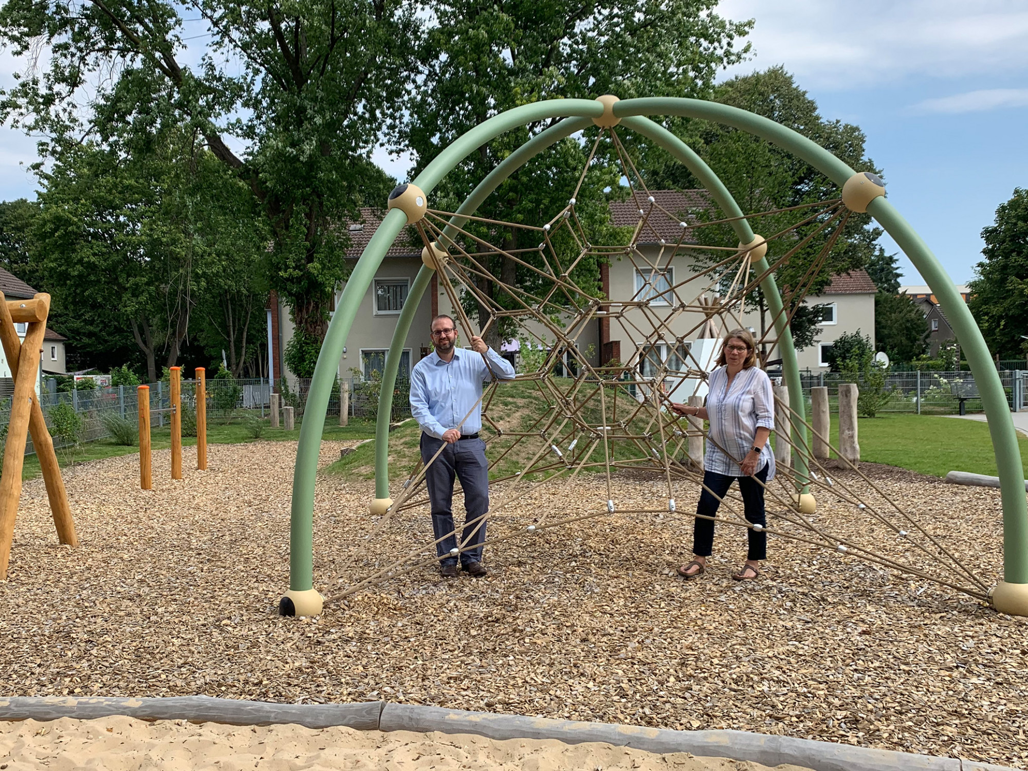 Eröffnet wurde die neue Anlage durch Martin Kölczer (seit dem 1. Juli 2020 neuer Fachbereichsleiter des Fachbereiches 6 Stadtentwicklung) und Susanne Hoffjann (Team Umweltschutz und Freiraumplanung). Für die Umgestaltung des in der ehemaligen Britensiedlung gelegenen Spielplatzes gab es außerdem Fördermittel.