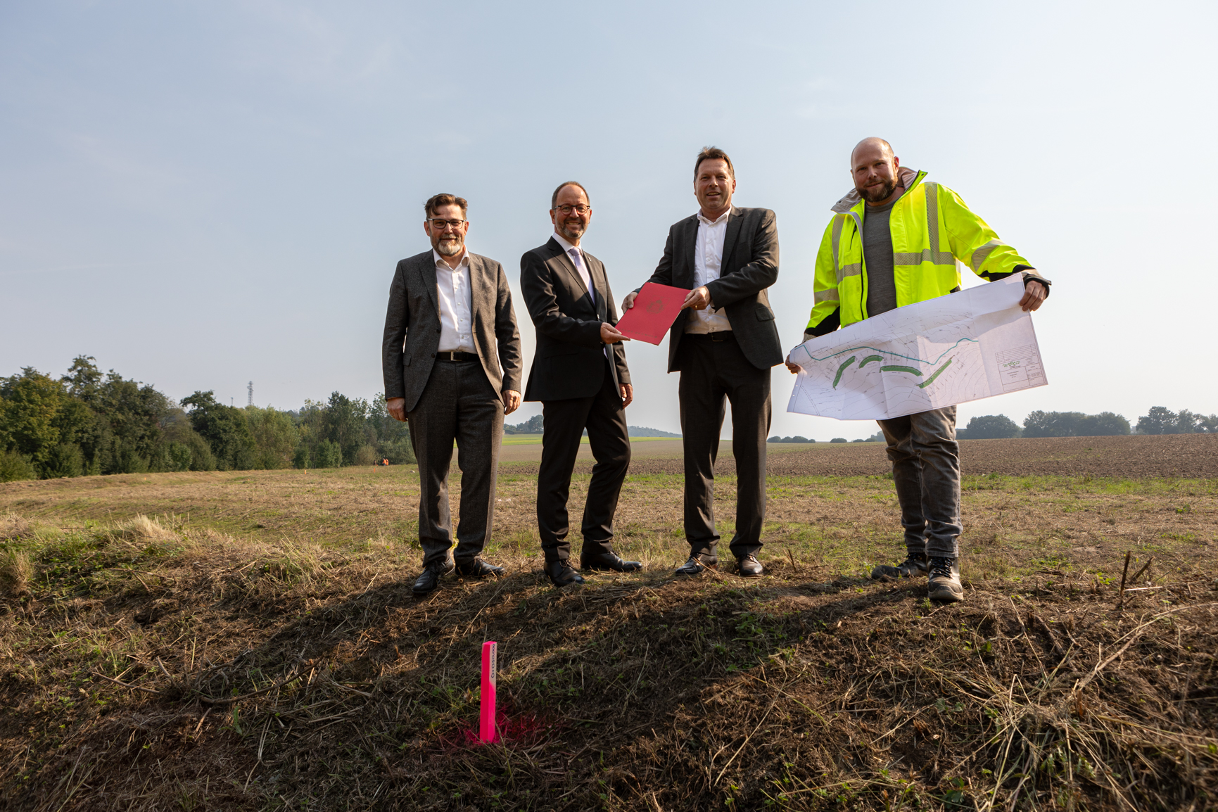 Das Foto zeigt (von links) Bernd Düsberg (Immobilenverwaltung Landesverband Lippe), Jörg Düning-Gast (Verbandsvorsteher Landesverband Lippe), Detmolds Bürgermeister Frank Hilker und Andreas Hoffmann, Teamleiter der Tiefbauplanung bei der Stadt Detmold.