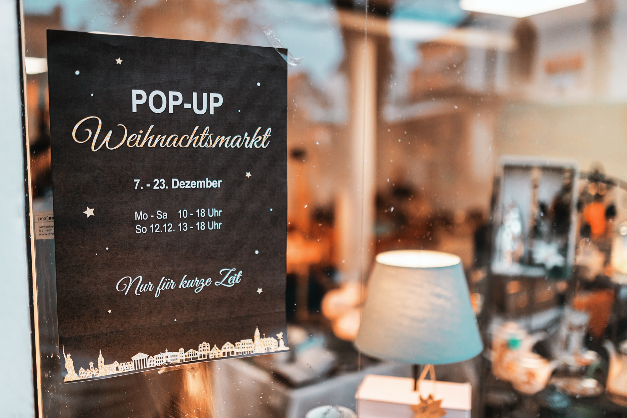 In einem Ladenlokal am Marktplatz öffnet ab sofort der Pop-Up Weihnachtsmarkt täglich seine Türen. Die Stadt möchte Bürgerinnen und Bürgern Gelegenheit geben, trotz der Absage des eigentlichen Weihnachtsmarktes Waren der Kunsthandwerkerinnen und -handwerker zu kaufen.