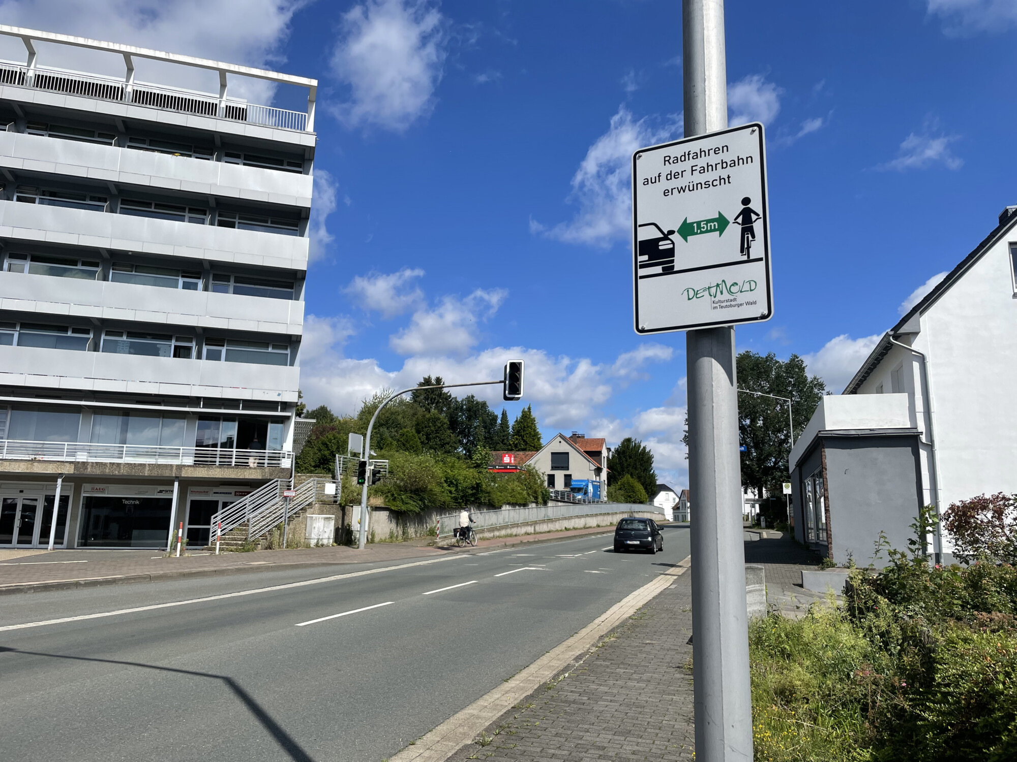 Nun aber weist ein Schild der Stadt Detmold darauf hin, dass das Fahren auf der – jeden Tag mit 18.000 Fahrzeugen frequentierten – Hornschen Straße „erwünscht“ ist. Man soll also einen sicheren Fahrweg aufgeben und sich dafür bis in die Innenstadt Dauergefahren aussetzen?? Das versteht hier kein Mensch, und man bezeichnet das als „Schilda“ und hofft, dass diese Situation wieder sinnvoll gestaltet wird, ehe noch etwas Schlimmes passiert….