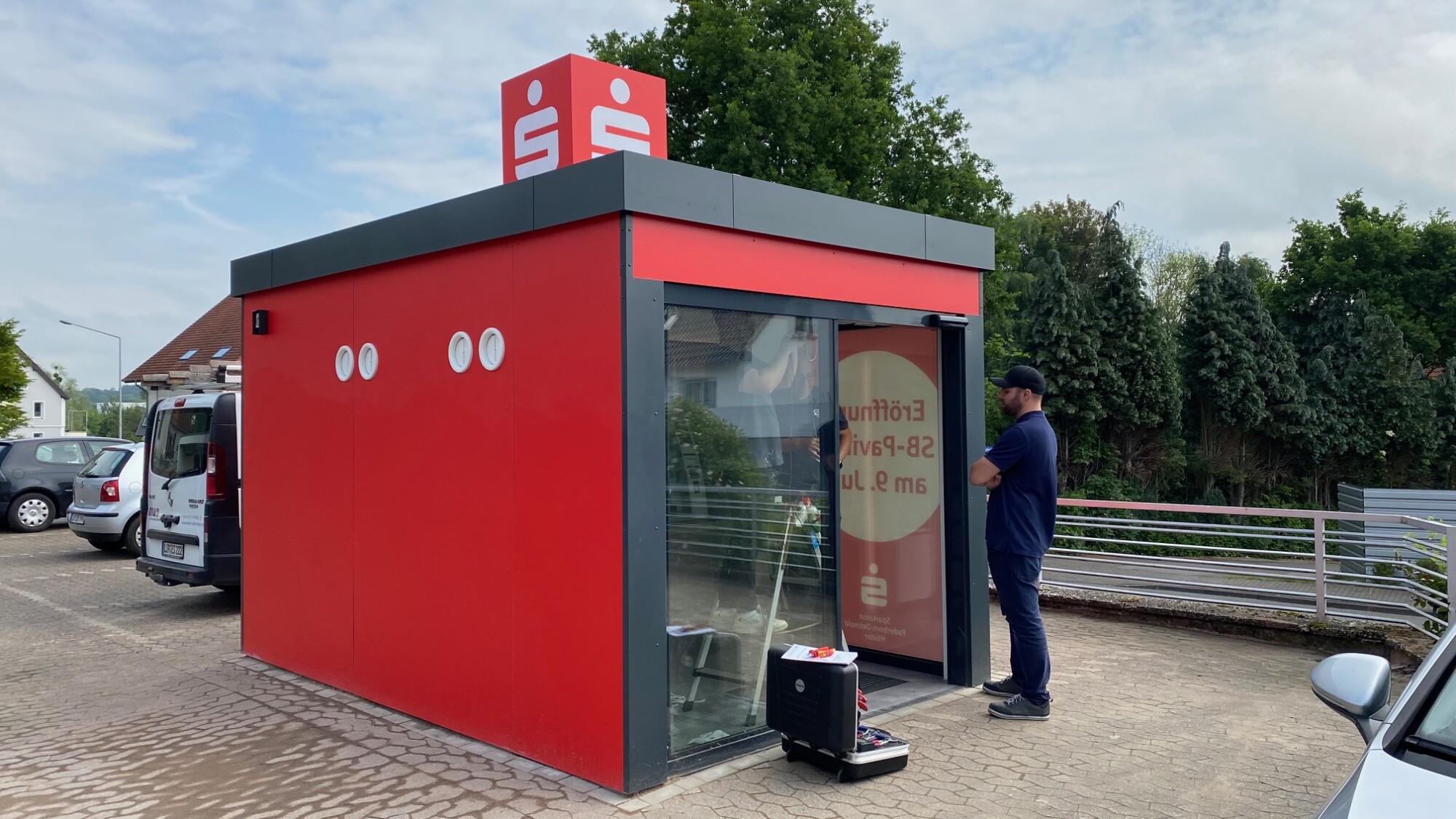 Durch die Überfälle auf Geldautomaten in den letzten Monaten waren nicht nur die Bürger in den Detmolder Ortsteilen extrem verunsichert, wo sie sich ihr Geld abholen sollten, sondern auch die Geldinstitute, die sich um sichere Aufbewahrungsorte kümmern mussten. Am Dreierkrugplatz in Spork-Eichholz ist man nun einen Schritt weiter: Die Geldautomaten der Sparkasse Paderborn-Detmold, die bisher im Gebäude des Hochhauses untergebracht waren, wurden dort wegen der möglichen Einsturzgefahr bei Sprengung entfernt. Weil der Standort aber dem Geldinstitut wie auch vielen Bürgern der umliegenden Ortsteile sehr wichtig sind, wurde vor Ort eine zukunftsträchtige Lösung gefunden. Als einer von zunächst vier Standorten in Detmold griff die Sparkasse tief in ihren Geldbeutel und investierte einen Automatencontainer, der laut Vorstandsmitglied Andreas Trotz der höchsten aktuellen Sicherheitsstufe entspricht, und installierte ihn auf dem Parkplatz neben dem Hochhaus. Am Freitag, den 9. Juni, geht er ans Netz und wird dann wieder dafür da sein, dass tagsüber Geld abgehoben werden kann. Es gibt also wieder Geld im Osten Detmolds!!