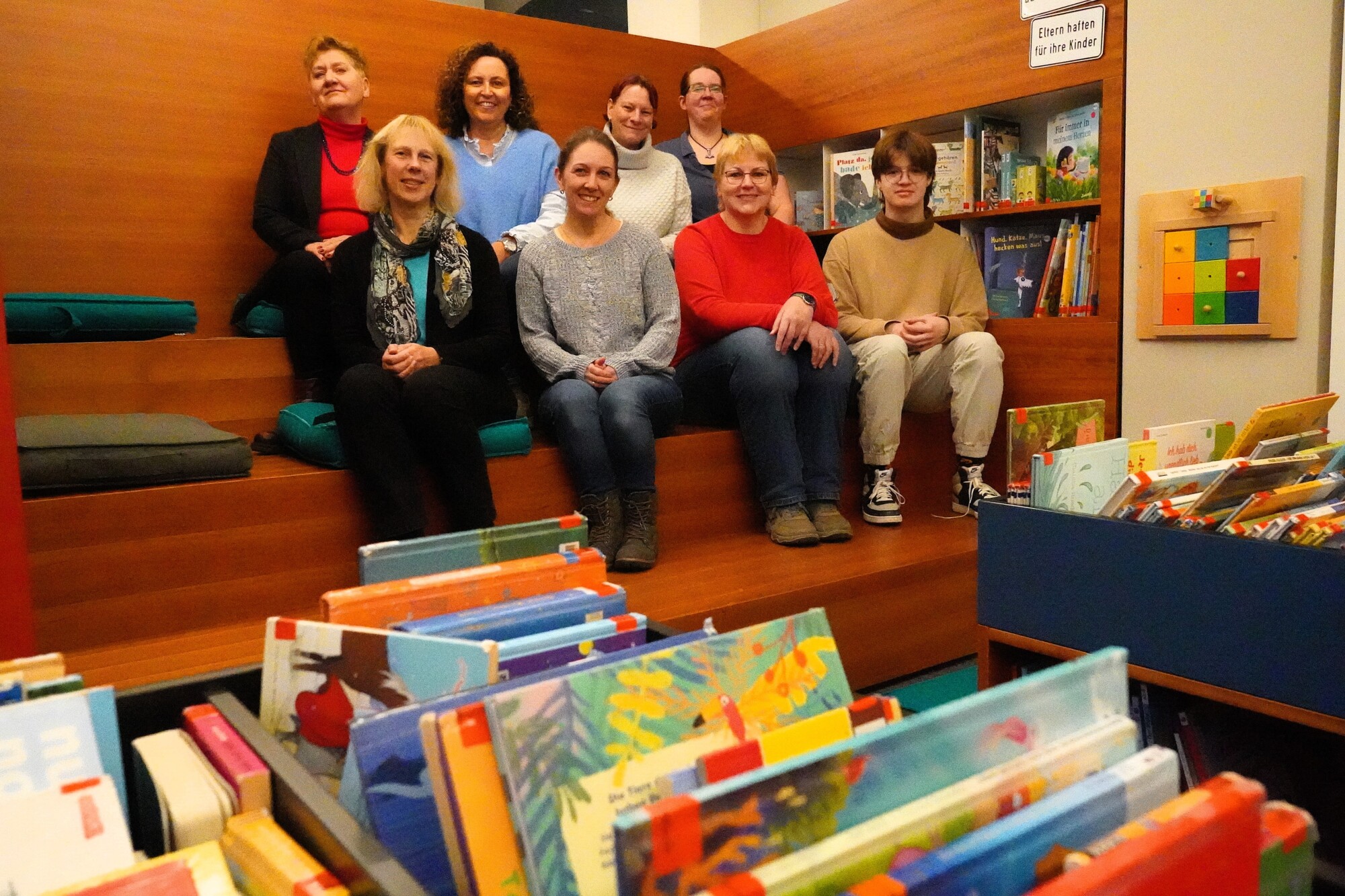 Das Team der Stadtbibliothek möchte feiern und freut sich am Samstag, 18. Januar, auf viele Besucherinnen und Besucher: (vordere Reihe, von links) Bibliotheksleiterin Manuela Kohl, Jennifer Dirks, Britta Grabbe, Simon Schultz sowie (hintere Reihe, von links) Frieda Teichrieb, Ida Böddeker, Katja Blume und Carina Deiß. Foto: Stadt Detmold