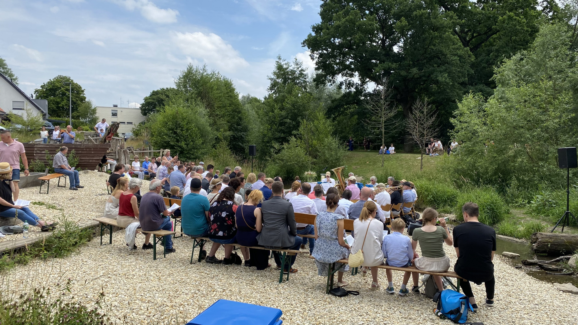 Ein außergewöhnlicher Gottesdienst fand am Sonntagnachmittag an der renaturierten Werre in Remmighausen statt. Unter großem Zuspruch der Bevölkerung wurden sieben Jugendliche – 5 Mädchen und 2 Jungen – im Wasser der Werre vor einem sehr schönen Naturhintergrund getauft. Nicht nur Pfarrerin Mareike Lesemann hatte großen Spaß dabei, im kalten Wasser stehend, das Taufritual zu vollziehen, sondern Pfarrer Burkhard Krebber hatte außerdem etwas Außergewöhnliches dazu beigetragen: Auf einer Studienfahrt mit Mitgliedern der Kirche Detmold-Ost hatte er vor sechs Jahren eine Studienfahrt nach Israel organisiert und dabei auch den Ort aufgesucht, wo Jesus seine ersten Taufe im Jordan erhalten haben soll. Dort hatte er eine Flasche mit Jordanwasser abgefüllt. Diese opferte er nun für die jungen Hauptpersonen des heutigen Tages, indem er das Jordanwasser oberhalb des Taufortes in die Werre schüttete. Damit wurde die Taufe für die sieben Täuflinge und ihren Angehörigen zu etwas noch Besonderem und für alle Anwesenden zu einem besonderem Event, das den heutigen Tag unvergessen machen dürfte. Der weitere Rahmen passte nämlich auch: Der Posaunenchor sorgte gekonnt für die musikalischen Beiträge, und Mitglieder des Kirchenrates hatten mit Würstchen und Getränken für das leibliche Wohl gesorgt. Kirche mitten in der Natur und mitten unter den Menschen – alle genossen noch länger dieses Ereignis….