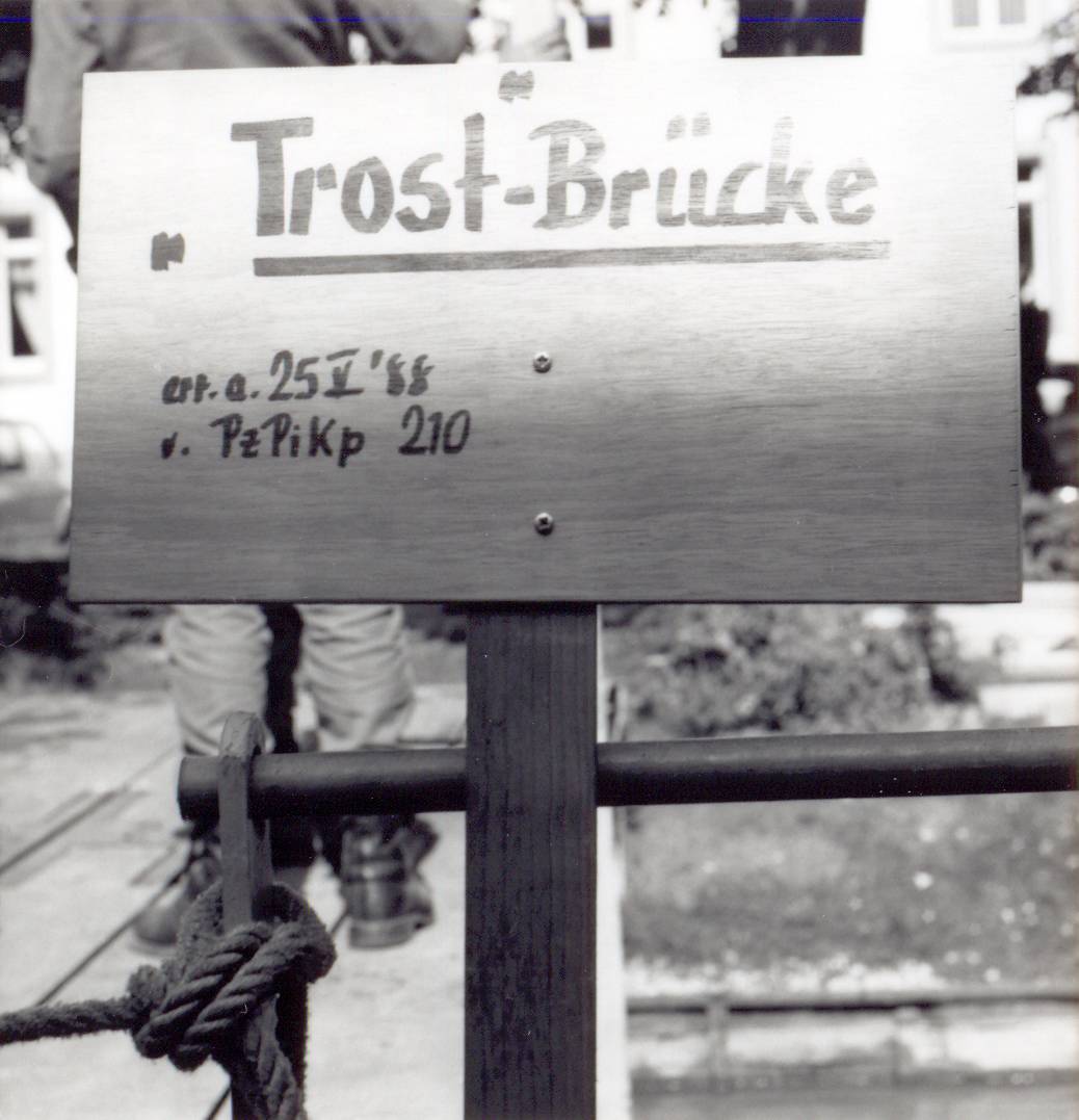 Bildunterzeile: Der Bürgeranwalt Helmut Trost kümmerte sich um die Sorgen und Nöte der Geschäftsleute und Anwohnenden rund um die Paulinenstraße und moderierte mit kreativen Ideen den Baustellenprozess – dabei legendär die „Trostbrücke“ über dem Wallgraben. Foto: Stadtarchiv Detmold