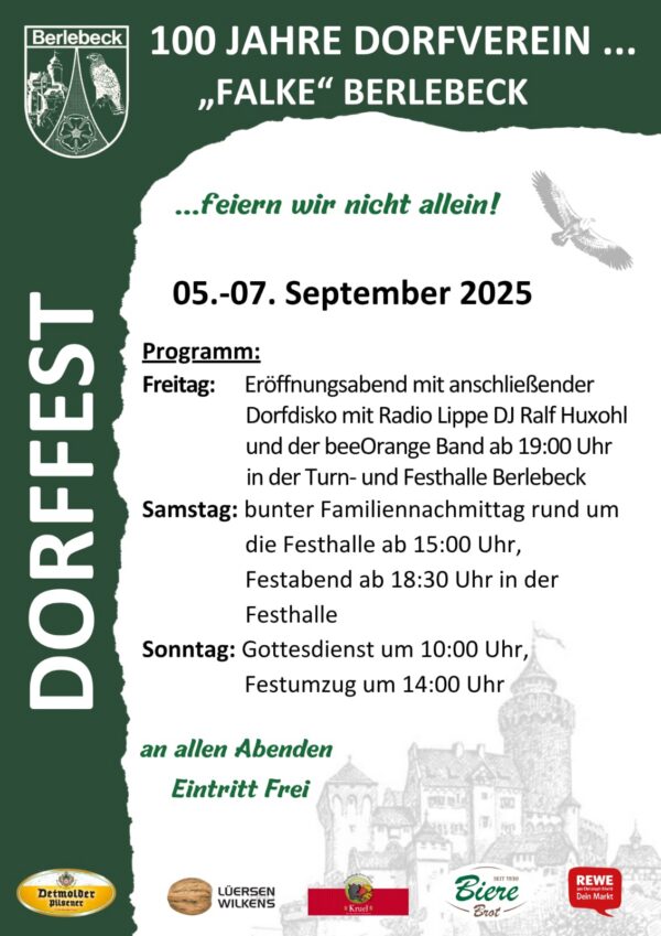 Alle Infos rund ums Dorffest 2025 werden hier zusammengetragen. 05. – 07.09.2025 in Berlebeck hier