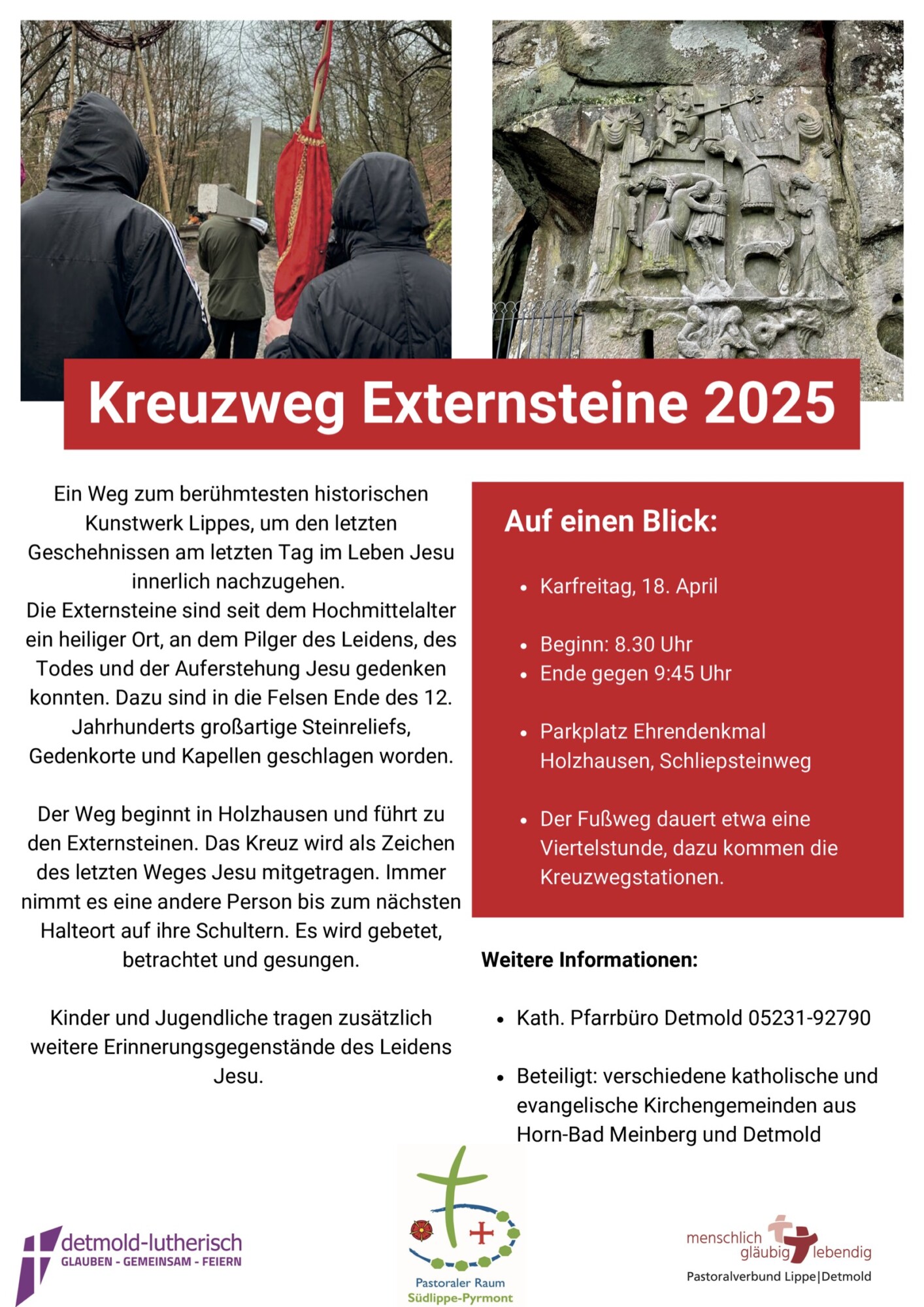 Fußweg zum Kreuzabnahmerelief an den Externsteinen und Kreuzwegstationen.