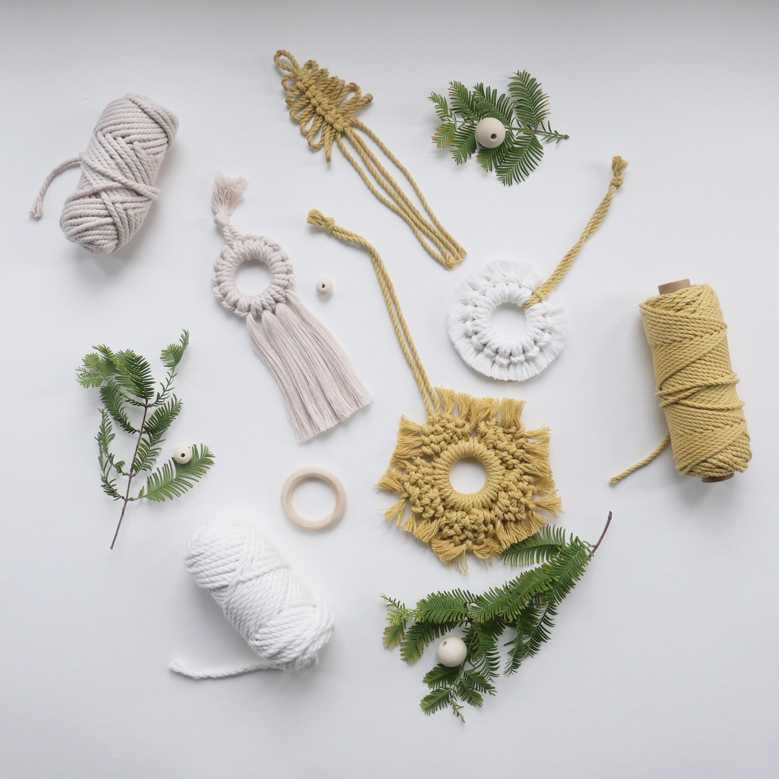 Bildunterzeile: Kreativ und weihnachtlich: Im Makramee-Workshop des Kulturrucksacks NRW entstehen aus Garn, Knoten und Tannenzweigen individuelle Dekorationen – perfekt zum Verschenken oder Behalten.                                                                Foto: Maia Kesseler