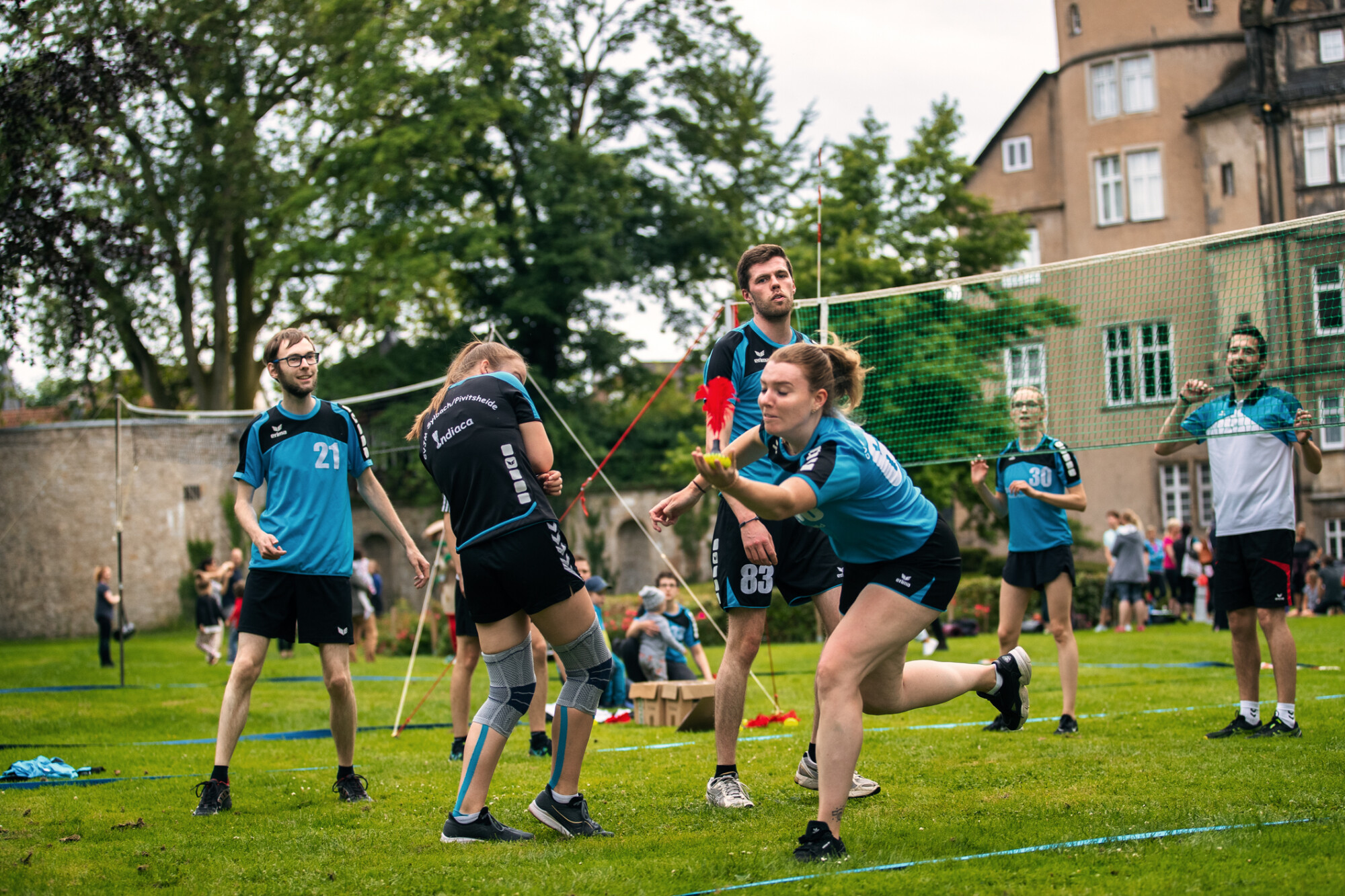 Unter freiem Himmel, unter fachkundiger Anleitung, miteinander und überdies noch kostenfrei und ohne Anmeldung: Die Veranstaltungsreihe „Sport im Park“ wird auch in diesem Sommer wieder viele begeisterte Anhänger finden. Das Foto aus dem vergangenen Jahr zeigt die Indiaca-Gruppe des CVJM Pivitsheide. Foto: Stadt Detmold